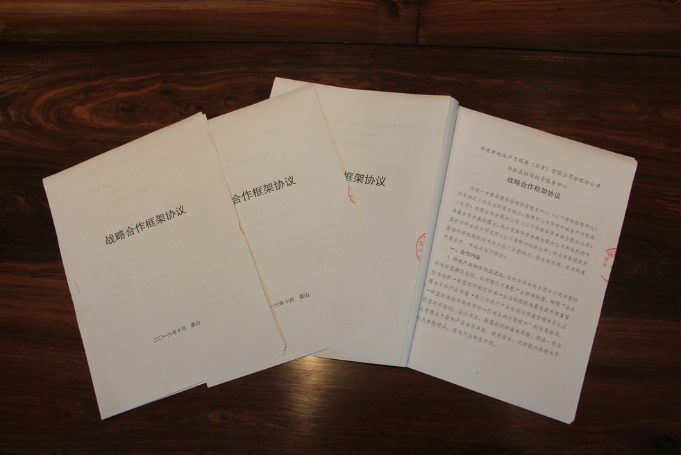 2016年10月13日,歙縣招商投資服務(wù)中心(以下簡(jiǎn)稱招商中心)與華質(zhì)卓越生產(chǎn)力促進(jìn)(北京)有限公司合肥分公司(以下簡(jiǎn)稱華質(zhì)卓越合肥分公司)在中心大樓一樓眾創(chuàng)空間簽定了《戰(zhàn)略合作框架協(xié)議》。