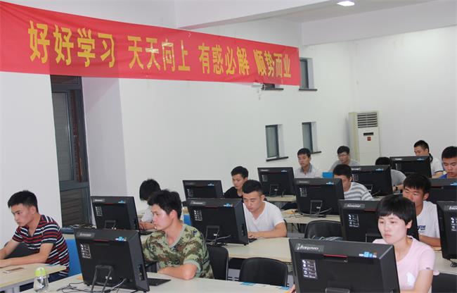 7月4日晚,歙縣青創(chuàng)職業(yè)學(xué)校電教室內(nèi)燈光明亮,參加全縣退役士兵職業(yè)技能培訓(xùn)班的小伙子們精神抖擻、興致盎然,“好好學(xué)習(xí) 天天向上 有惑必解 順勢(shì)而業(yè)”的大紅標(biāo)語(yǔ)也格外醒目。學(xué)員們?cè)诎滋炖碚摻虒W(xué)的基礎(chǔ)上,利用晚上進(jìn)行上機(jī)實(shí)際操作,鞏固提升所學(xué)知識(shí),相得益彰??矗麄儗W(xué)得多認(rèn)真??!
