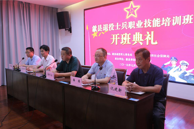 7月19日,歙縣2019年度第二期退役士兵職業(yè)技能培訓(xùn)期班開班儀式在我青創(chuàng)職業(yè)培訓(xùn)學(xué)校隆重舉行??h退役軍人事務(wù)局局長金自立、副局長潘煉、張青峰等領(lǐng)導(dǎo),青創(chuàng)職業(yè)培訓(xùn)學(xué)校、康順駕校負(fù)責(zé)人出席開班儀式并發(fā)表講話。