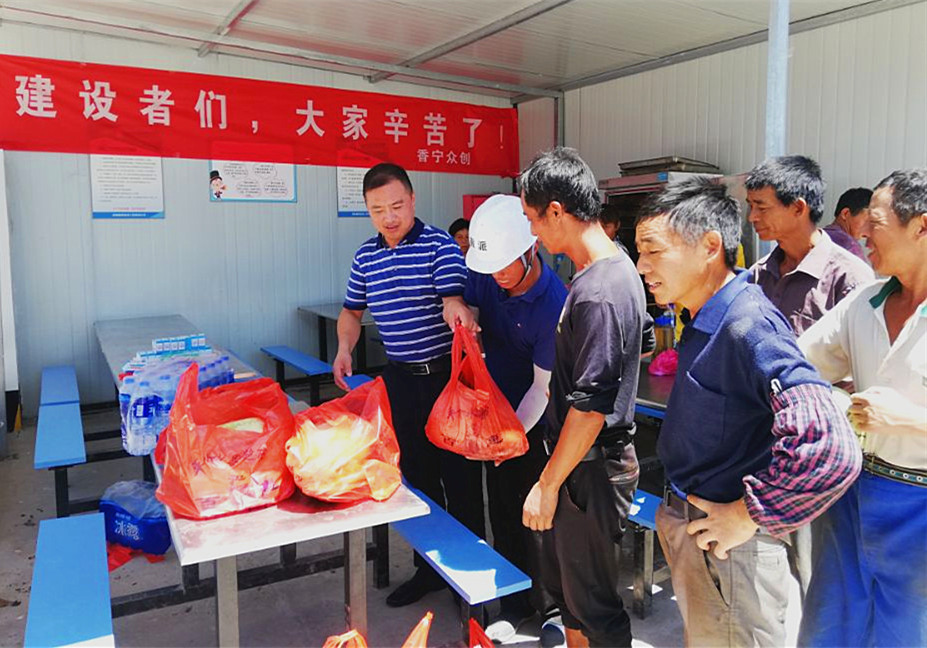 8月2日,中心主任胡海鋒來到香寧科技創(chuàng)業(yè)服務(wù)中心暨歙縣退役軍人創(chuàng)業(yè)孵化和就業(yè)促進(jìn)基地項(xiàng)目建筑工地,對冒高溫、戰(zhàn)酷暑的建設(shè)工友進(jìn)行親切慰問。胡海鋒主任將西瓜、礦泉水和解暑藥等慰問品分發(fā)到建設(shè)者手中,并感謝大家的辛勤付出,同時(shí)叮囑大家一定要注意防暑降溫,確保安全生產(chǎn)。