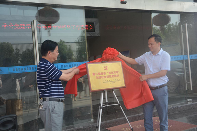 會(huì)議首先為金信財(cái)稅黨支部獲得的安徽省第二批“雙比雙爭(zhēng)”先進(jìn)社會(huì)組織黨組織榮譽(yù)進(jìn)行揭牌。縣委組織部副部長(zhǎng)、非公工委書記吳堅(jiān)、徽城鎮(zhèn)黨委書記張贈(zèng)共同為該獎(jiǎng)牌揭開大紅的綢布并分別作重要講話,這也是我縣黨組織獲得的第三塊省級(jí)黨建榮譽(yù)獎(jiǎng)牌。