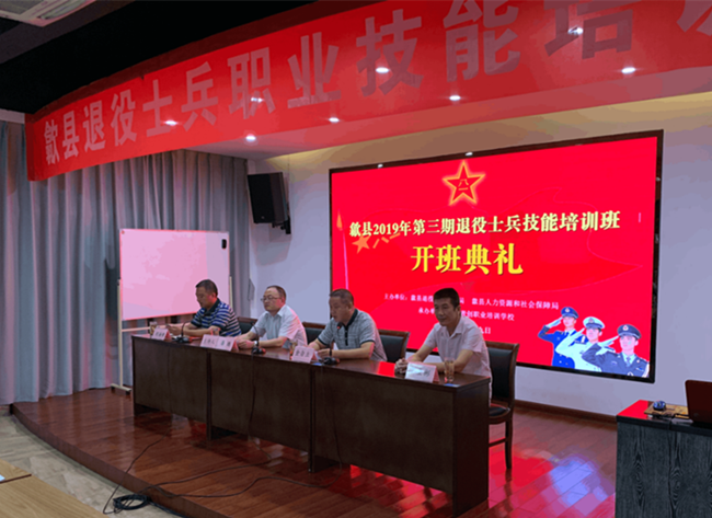 9月9日,歙縣2019年度第三期退役士兵職業(yè)技能培訓(xùn)期在我青創(chuàng)職業(yè)培訓(xùn)學(xué)校隆重開班??h退役軍人事務(wù)局局長(zhǎng)金自立、副局長(zhǎng)潘煉等領(lǐng)導(dǎo),青創(chuàng)職業(yè)培訓(xùn)學(xué)校、康順駕校負(fù)責(zé)人出席開班儀式并發(fā)表講話。