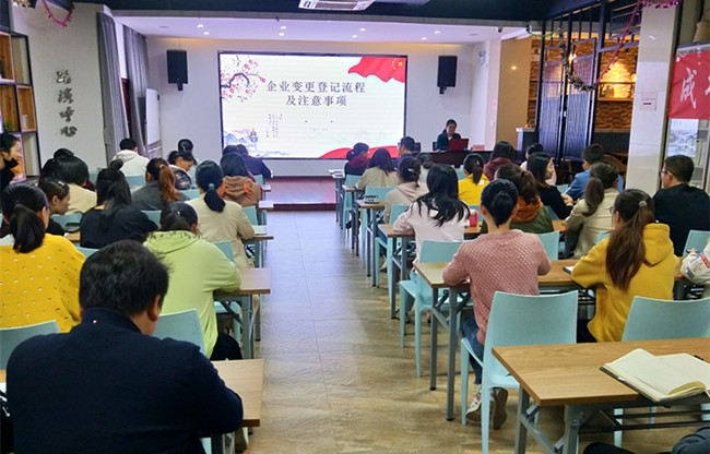 10月23日,由受理中心汪蕓主講的“企業(yè)變更登記流程及注意事項”專題PPT分享在一樓眾創(chuàng)空間舉行,園區(qū)企業(yè)負責人和中心財稅服務人員40余人參與此次分享。