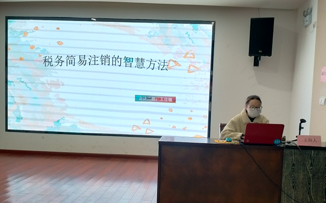 王佳敏會計(jì)從事具體業(yè)務(wù)時間不長,但她學(xué)習(xí)努力、備課認(rèn)真,她結(jié)合日常服務(wù)累積的經(jīng)驗(yàn)和所學(xué)的財(cái)稅知識,向大家詳細(xì)講解了企業(yè)稅務(wù)簡易注銷需符合的條件、并以具體案例演示了辦理簡易注銷的操作流程。經(jīng)過王佳敏的講解,參與分享的人員對“簡易注銷”有了更深入、全面的認(rèn)識,有助于更好的為企業(yè)做好服務(wù)。最后,中心副主任汪銘進(jìn)行了點(diǎn)評,他鼓勵年輕員工放開膽子去嘗試、不斷總結(jié)求提高,借助PPT的形式與他人分享收獲,探討問題,促進(jìn)團(tuán)隊(duì)和個人更好成長和更快提升!