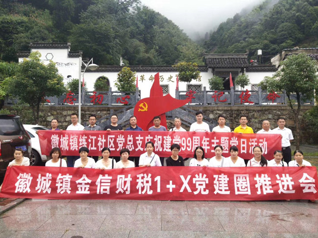 2020年7月3日,在中國共產黨成立99周年之際,我金信財稅黨支部1+X黨建圈與練江社區(qū)黨總支20余名黨員和建黨對象、積極分子等,冒雨走進歙縣上豐鄉(xiāng)巖源村革命老區(qū),聯(lián)合開展“走進紅色巖源 重溫革命歷史”主題黨日活動。