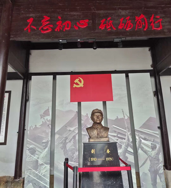 當日,在巖源村,支部黨員與積極分子認真聆聽鄉(xiāng)、村干部對革命年代艱苦歲月、浴血奮戰(zhàn)事跡的深情回憶和真實描述,并參觀巖源革命歷史陳列館,瞻仰新四軍游擊隊隊長劉奎雕像。