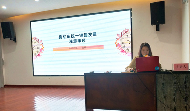 呂燕是一名初級會計師,她平時工作努力、勤奮好學(xué)、積極向上,已經(jīng)成為公司的骨干力量。此次分享她結(jié)合機動車銷售統(tǒng)一發(fā)票的種類、開具的注意事項以及特殊規(guī)定等幾個方面進(jìn)行詳細(xì)介紹,經(jīng)過呂燕的講解,使參與分享人員對機動車銷售發(fā)票開具、使用和抵扣有了更全面的了解和認(rèn)知,有助于更好的為企業(yè)做好服務(wù)。
