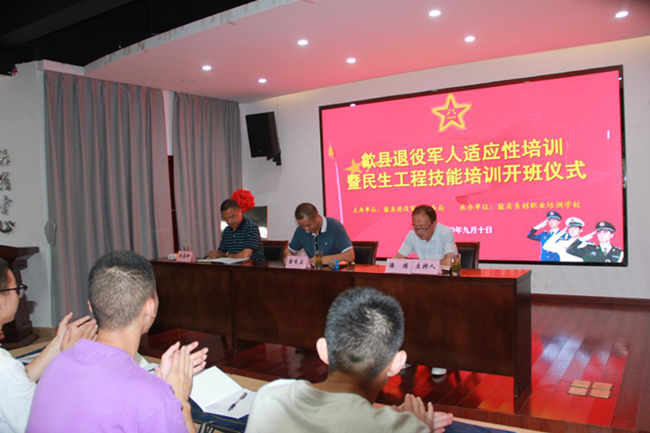 9月10日,歙縣2020年度退役軍人適應性培訓暨民生工程技能培訓在我青創(chuàng)職業(yè)培訓學校隆重開班??h退役軍人事務局局長金自立、副局長潘煉、青創(chuàng)職業(yè)培訓學校胡海鋒出席開班儀式。