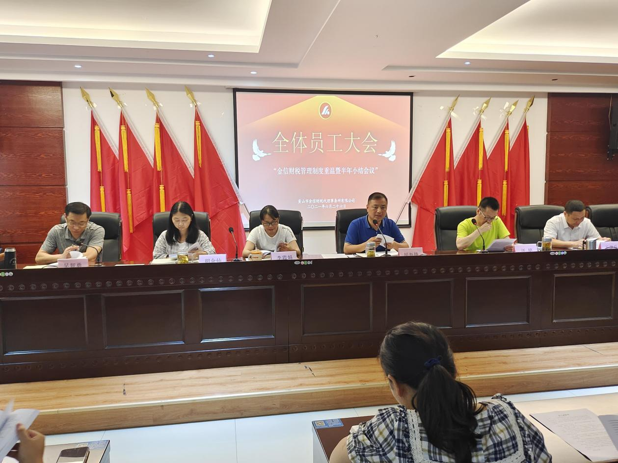 2021年6月26日,歙縣招商投資服務中心、黃山市金信財稅代理事務所有限公司“管理制度重溫暨半年小結會議”在五樓報告廳隆重舉行,中心全體員工60余人參加會議,中心主任胡海鋒主持會議并做重要講話。