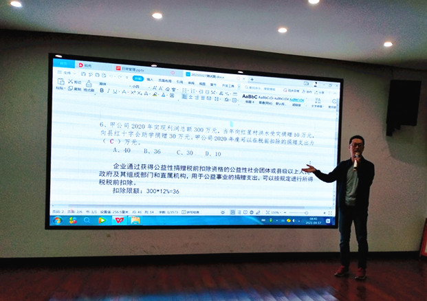 測試結(jié)束后,中心副主任、注冊會計師汪銘對測試題進行分析和解答,并對相關(guān)重點、難點、易錯點著重講解。通過書面測試及考后講解,中心服務(wù)人員對相關(guān)的知識考點及稅收政策等會有更全面的了解,有助于加強和鞏固專業(yè)知識的學(xué)習(xí)和提升,更好的為客戶做好服務(wù)。