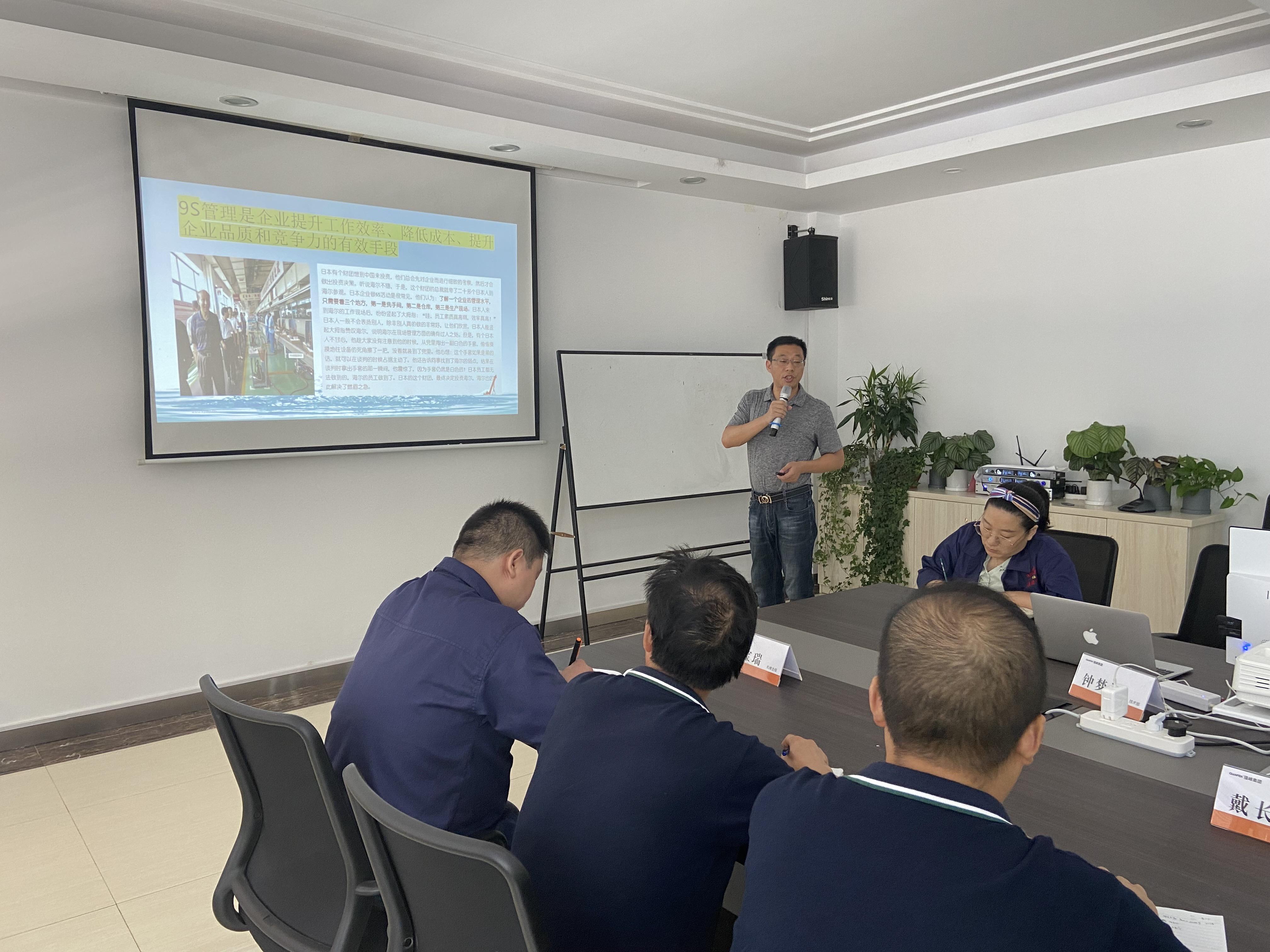 (上圖為正億公司注安師吳智勇對強(qiáng)峰鋁業(yè)組長以上員工進(jìn)行9S管理基礎(chǔ)培訓(xùn)。)