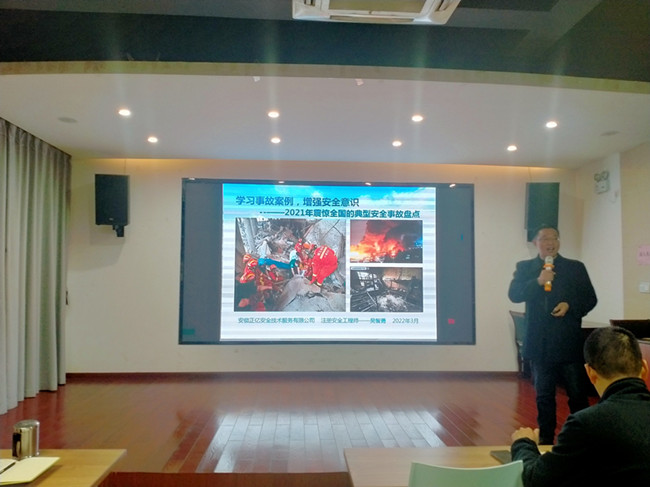 2022年3月5日,由歙縣招商投資服務(wù)中心主辦,安徽正億安全技術(shù)服務(wù)有限公司承辦,該公司注冊(cè)安全工程師吳智勇主講的“學(xué)習(xí)事故案例,提高安全意識(shí)”專題培訓(xùn)在一樓眾創(chuàng)空間舉行,園區(qū)企業(yè)負(fù)責(zé)人和中心財(cái)稅服務(wù)人員40余人參與此次分享。