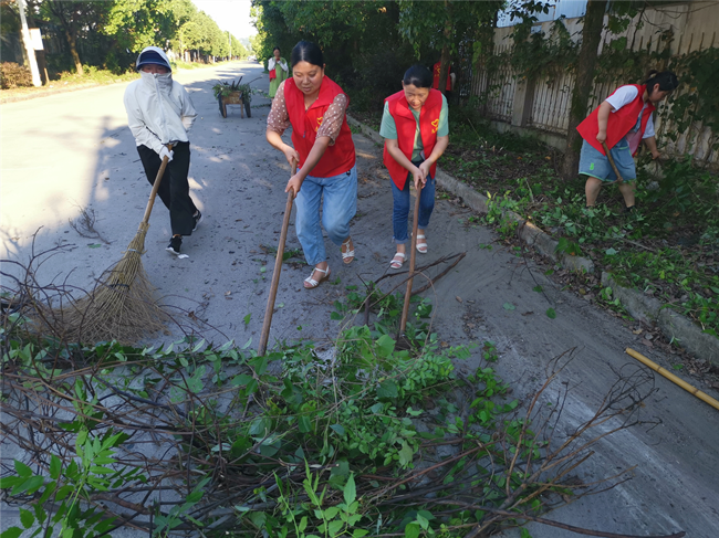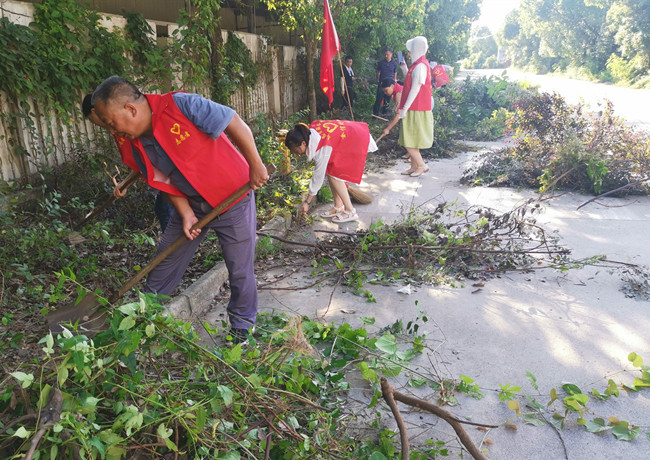 夏日炎炎,地面溫度接近40℃,但全體黨員熱情高漲,支部書記胡海鋒一馬當先、率先垂范,對兩側(cè)的雜亂植物進行清理;其他黨員也毫不示弱,利用各種工具參與其中,汗如雨下,順著臉頰酣暢流淌,浸濕前胸后背,但大家都毫不在意。經(jīng)過2個小時的緊張奮戰(zhàn),使園區(qū)這一路段由“雜草叢生”變成“眼前一亮”,大道更加寬敞、整潔。