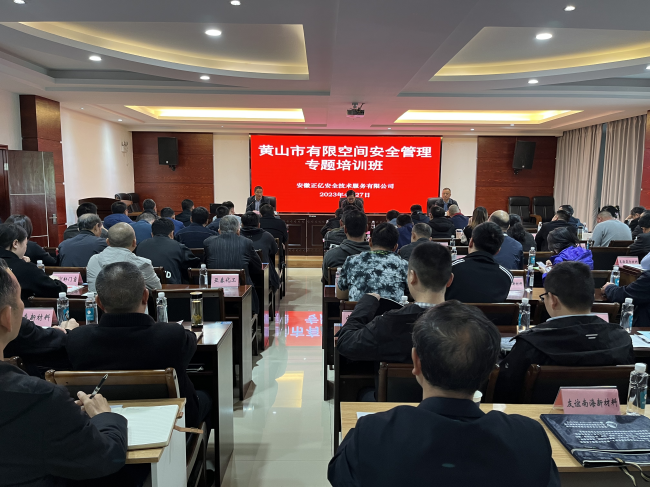 2023年4月27日,全市工貿(mào)行業(yè)(有限空間作業(yè))安全管理專題培訓(xùn)班順利開班。本次培訓(xùn)由安徽正億安全技術(shù)服務(wù)有限公司承辦,全市工貿(mào)行業(yè)涉及有限空間作業(yè)的企業(yè)近80家共110名學(xué)員參加。黃山市應(yīng)急管理局副局長吳永杰出席開班儀式并做重要講話,歙縣應(yīng)急局張衛(wèi)國局長主持會(huì)議。屯溪區(qū)、徽州區(qū)、祁門縣、黟縣、市高新區(qū)等區(qū)縣應(yīng)急管理局領(lǐng)導(dǎo)專程帶隊(duì)參加培訓(xùn)。