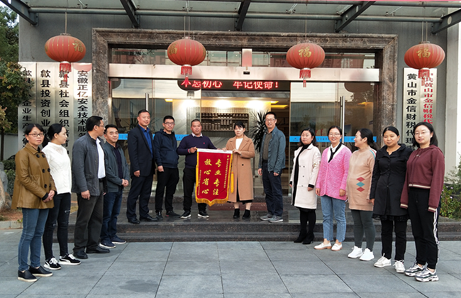 2019年10月28日,休寧縣五五零五農(nóng)業(yè)科技有限公司總經(jīng)理陳旭輝帶著“專(zhuān)業(yè)專(zhuān)注、放心省心”標(biāo)語(yǔ)的錦旗來(lái)到我金信財(cái)稅公司,對(duì)我公司為其指導(dǎo)財(cái)稅管理、建立賬務(wù)的保姆式服務(wù)及服務(wù)會(huì)計(jì)楊鳳琴表示感激之情。當(dāng)日,總經(jīng)理胡海鋒,副總經(jīng)理汪銘及相關(guān)部門(mén)負(fù)責(zé)人一同接受錦旗。