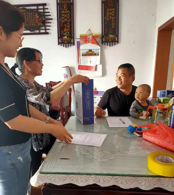 [上圖為上圖為財稅部李霞娟經(jīng)理走訪黃山權(quán)敢勞務(wù)有限公司經(jīng)理王連生并送上感恩禮包。]