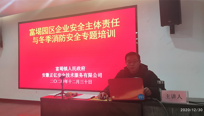 2020年12月30日,以“企業(yè)安全主體責(zé)任與冬季消防安全”為主題的富堨園區(qū)企業(yè)安全生產(chǎn)管理培訓(xùn)在歙縣招商投資服務(wù)中心順利舉行。培訓(xùn)由我中心下屬機構(gòu)——安徽正億安全技術(shù)服務(wù)有限公司注冊安全工程師吳智勇主講,富堨園區(qū)21家重點企業(yè)的負責(zé)人或車間主任、安全員等20余人參加培訓(xùn)。