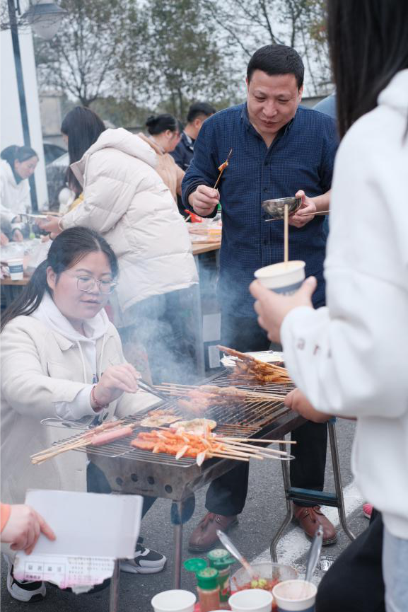 徒步歸來(lái),美味燒烤靚麗登場(chǎng)。你看,食材琳瑯滿(mǎn)目,爐火歡快跳動(dòng),大家興致高漲,紛紛展示各自的看家燒烤技藝,其樂(lè)融融。羊肉串、雞翅膀、粉絲扇貝、臭豆腐等幾十種食材輪番上陣,使味蕾和舌尖得到刺激和滿(mǎn)足。