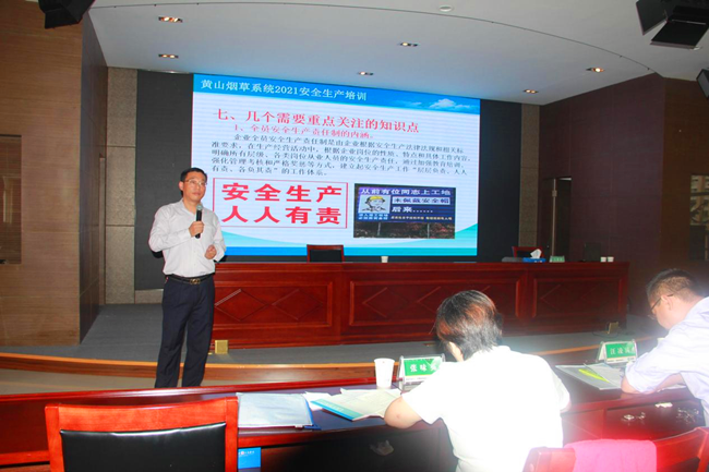 2021年10月15日,黃山市煙草專(zhuān)賣(mài)局(公司)企業(yè)安全生產(chǎn)培訓(xùn)班在市公司駐地順利舉辦。黃山市應(yīng)急管理局副局長(zhǎng)吳永杰作開(kāi)班動(dòng)員講話,并就近期全國(guó)安全生產(chǎn)形勢(shì)進(jìn)行通報(bào),對(duì)行業(yè)相關(guān)工作作出部署和要求。市局領(lǐng)導(dǎo)班子、局機(jī)關(guān)各職能部門(mén)及徽州皖韻酒店,各區(qū)縣局(營(yíng)銷(xiāo)部)負(fù)責(zé)人、安全生產(chǎn)管理人員近70余人參加培訓(xùn)。我安徽正億安全技術(shù)服務(wù)有限公司承擔(dān)培訓(xùn)內(nèi)容準(zhǔn)備和課程安排等工作。