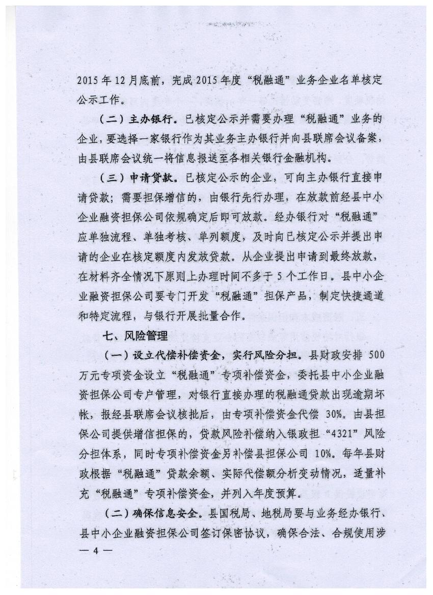 關于印發(fā)歙縣稅融通業(yè)務實施細則的通知